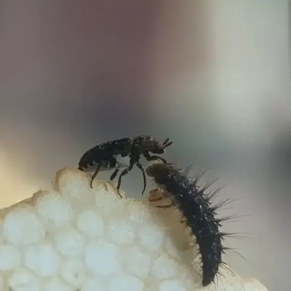 Late instar larvae search for a nice material to bore into when they are ready to pupate. Styrofoam is an easy material to use for this purpose. The larvae spit out the pieces of styrofoam while making their tunnel, creating a pile of 'styrofoam dust'. This dust can easily be sieved out from the ground cover (such as hemp fiber) together with the beetle frass when cleaning the enclosure. If you want to remove the piece of styrofoam altogether, it can easily be taken apart to ensure not a single beetle gets thrown away.